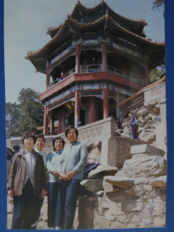 这是行政分会组织的一次活动,当时拍照的背景在哪我说不上来了,但是照片中的四个人有蒋温敏老师、姚飞琴书记、我、李凤琴老师。右边第二位就是姚飞琴书记,当时她是咱们单位的党委书记,是一位特别优秀的政工干部。她对人能做到一视同仁,对年轻干部重在培养。我们参加外面的培训、学习,回来以后她都让你把学习到的情况在周会上做一个汇报,锻炼你的口头表达能力。九十年代初,咱们搞行风建设的时候,那时候工作任务比较多,我这出的材料也比较多,每次写完材料给她审阅的时候,她首先是鼓励,然后再针对文章问题指出来,哪儿应当怎么改,怎么写好,都有具体的指导,特别好的一个人。