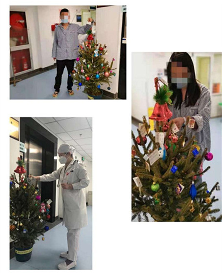 医护患一起精心地装饰着这棵“生命之树”,并纷纷写下对未来的美好祝愿,挂在树上,期望美好愿望都能成真。