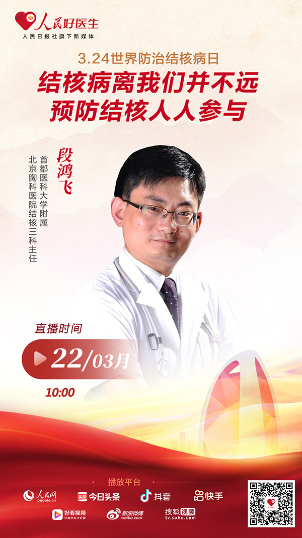 2022年3月22日10:00首都医科大学附属北京胸科医院结核三科主任段鸿飞做客人民好医生客户端,与大家分享预防结核的相关内容。