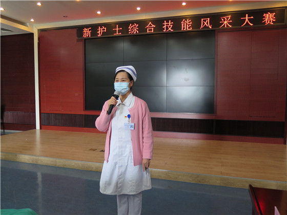 护理部主任王秀华对大赛进行总结发言。她说到,各位新参加工作的护理人员,通过本次比赛,在理论和技能方面得到了全面提升。在疫情防控常态化下,护理人员要继续加强护理专科技能和对突发事件的综合处理能力,做到一手抓疫情防控,一手做好医疗救治工作。