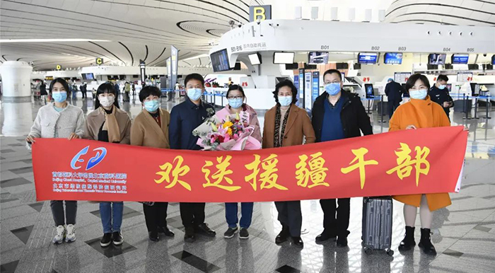 2022年3月31日,北京胸科医院结核一科副主任医师李强同志,作为北京市第十批第三期援疆医疗队成员,启程赴新疆和田地区传染病专科医院,开展为期一年的技术援助工作。市卫生健康委一级巡视员李彦梅、市卫生健康委干部人事处副处长智利平同志、市医院管理中心组织与人力资源管理处副处长朱晓瑞同志到机场慰问欢送。所党委副书记、纪委书记庞宇同志带领李强所在党支部书记、科室主任以及党委办公室、医务处等一行6人,与李强家人一同到机场送行。