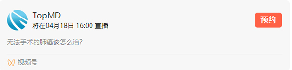 TopMD肿瘤患者俱乐部专场直播(第十期)即将开启,为大家邀请到了:首都医科大学附属北京胸科医院肿瘤内科李红霞副主任医师,为不能手术的肺癌患者答疑解惑。就在2022年4月18日(周一)16:00-17:00,点击下方按钮预约直播,届时即可进入直播间!