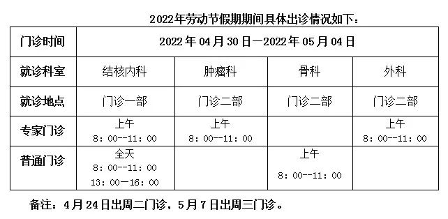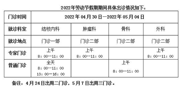 北京胸科医院2022年“劳动节”假期期间出诊信息