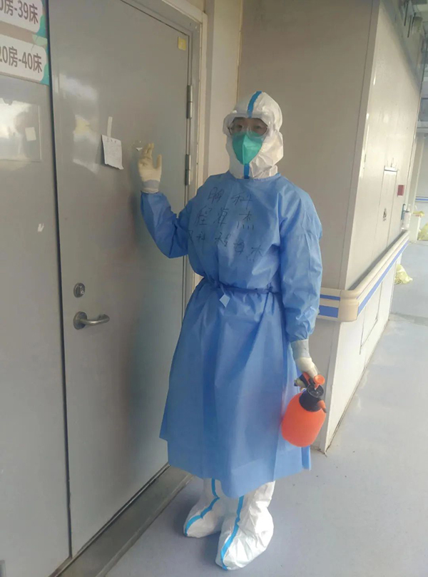 经过了6月14日紧张的培训,6月15日,我们和安贞医院的工作人员组成一个医疗队,正式开始工作。我作为感控专员,负责督查医务人员手卫生、穿脱防护服、医疗垃圾处置、环境消杀等工作。战友们和我默契配合,用最短的时间快速熟悉、用最大的真诚相互支持、用最深的关爱安慰彼此。我真的感动了,战友的支持让我坚持。