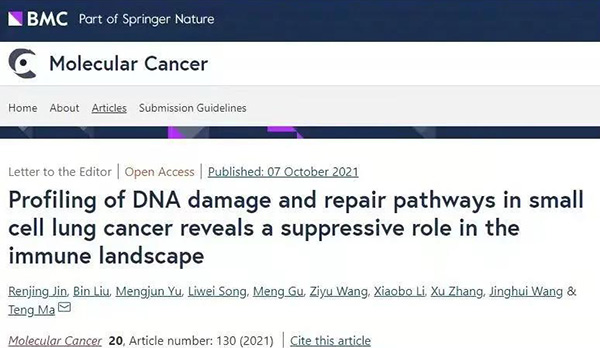 2021年10月,首都医科大学附属北京胸科医院肿瘤研究中心马腾教授团队在分子肿瘤学杂志Molecular Cancer在线发表题为“Profiling of DNA damage and repair pathways in small cell lungcancer reveals a …