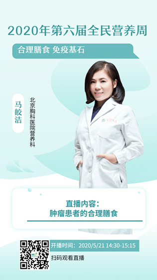 第六届全民营养周来啦! 2020年5月17日--5月23日为第六届全民营养周,首都医科大学附属北京胸科医院临床营养科将于5月19日 (周二)和5月21日(周四)分别举办面向结核和肿瘤患者的线上营养科普活动…