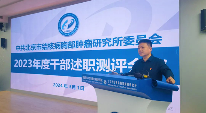 近日,北京胸科医院召开2023年度干部述职测评会,医院领导班子成员、科室主任及副主任、二级科室主任及副主任和科室负责人参加,主持科室工作的干部做个人述职报告。会议由党委副书记、纪委书记庞宇同志主…